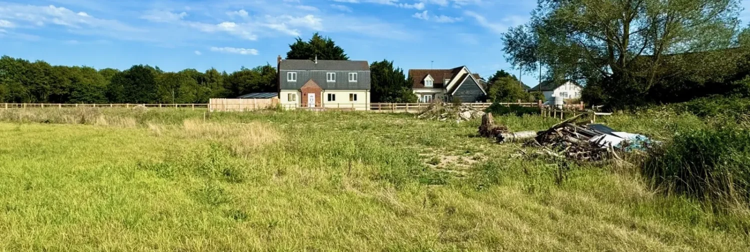 A plot of land located next to Abbey Bottom Farm with approved planning permission to construct a detached four bedroom dwelling off the Harwich Road.