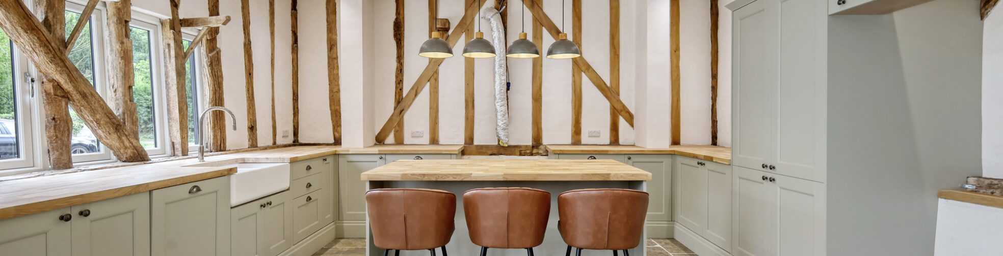 - Exposed oak beams, underfloor heating and natural stone floors