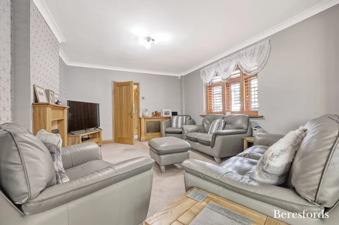 A family home with spacious rooms and plenty of storage. With an entrance hallway with oak stairwell to the first floor and oak radiator cabinets, from the moment you step inside you will be impressed with the superior presentation of the property from the Amtico flooring to the A/C rooms in the loft.. With internal oak doors and skirting board doors, new window shutters, modern bathroom and ground floor shower room. This property has it all. For those needing to Work From Home, there is a purpose-built office, and the side extension comprises of a 9 m conservatory.