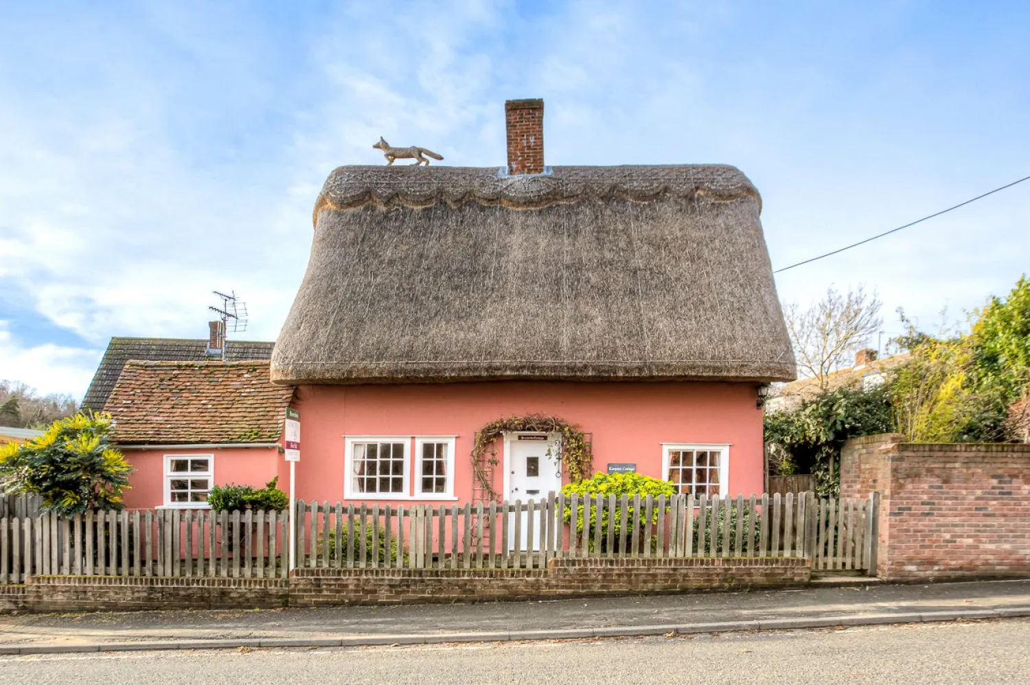 A beautifully presented 3 bedroom detached Grade II Listed cottage c.17th Century with later additions having been re-thatched in 2021 and located in the heart of Shalford village just over 5 miles from Braintree town centre. Keepers Cottage has a front entrance and can also be accessed via a separate gateway from the detached garage. The entrance hallway gives access into two reception rooms, one with a sunny bay window overlooking the garden and the second sitting room leading through to a snug/study room with access into the third bedroom. Both the main reception rooms feature brick open fireplaces, with a wealth of exposed beams and timber doors. The country-style kitchen/breakfast room is to the rear looking out to the garden with an inner hall leading out to a side sun terrace. Within the kitchen is a range cooker, tiled floor, column radiator and ample light flooding in from the two large windows. There is also a fully-tiled family bathroom on the ground floor and door from the reception leading to the staircase. Upstairs are two spacious double bedrooms with built-in wardrobes, vaulted ceilings and exposed timbers.